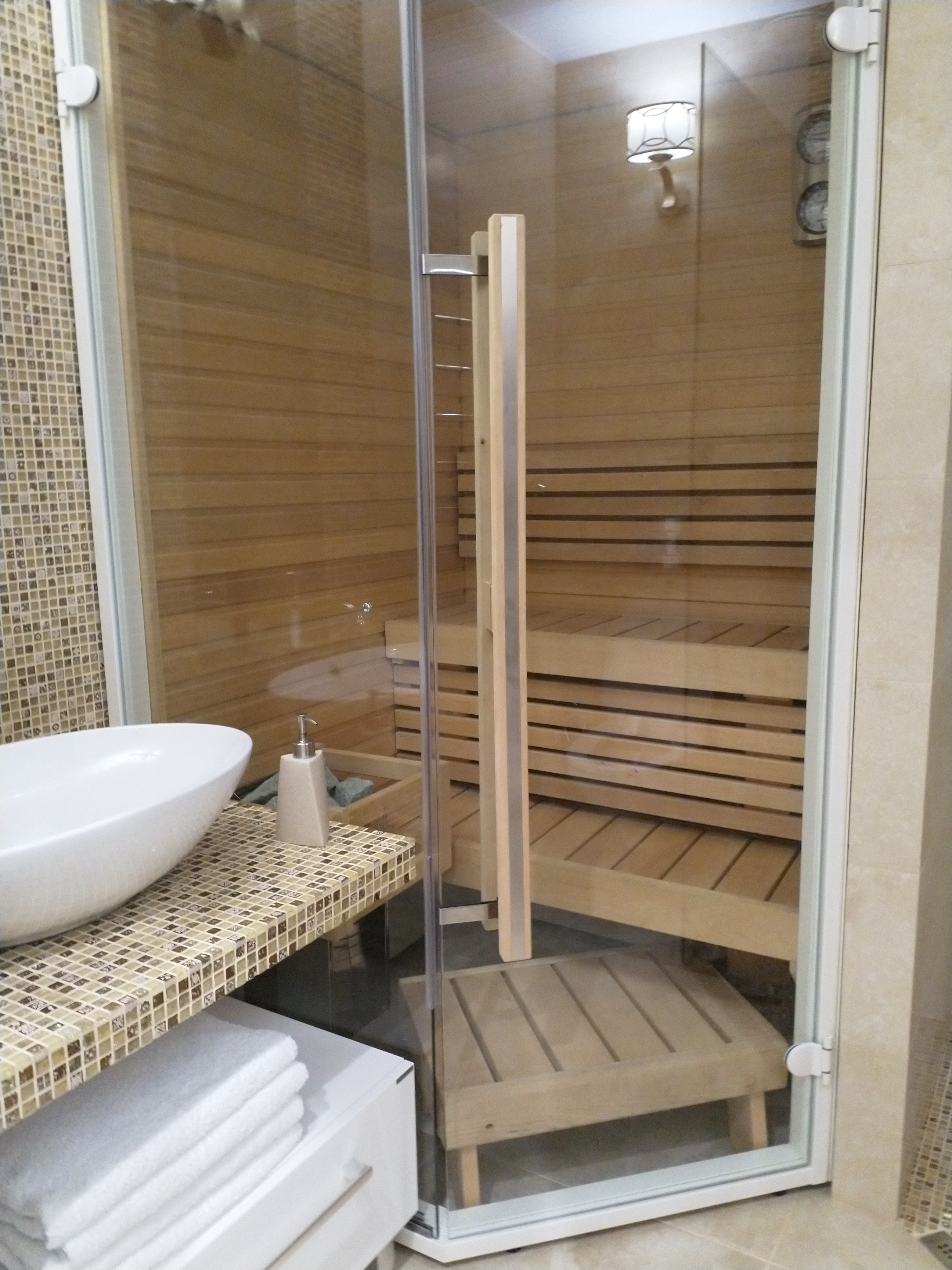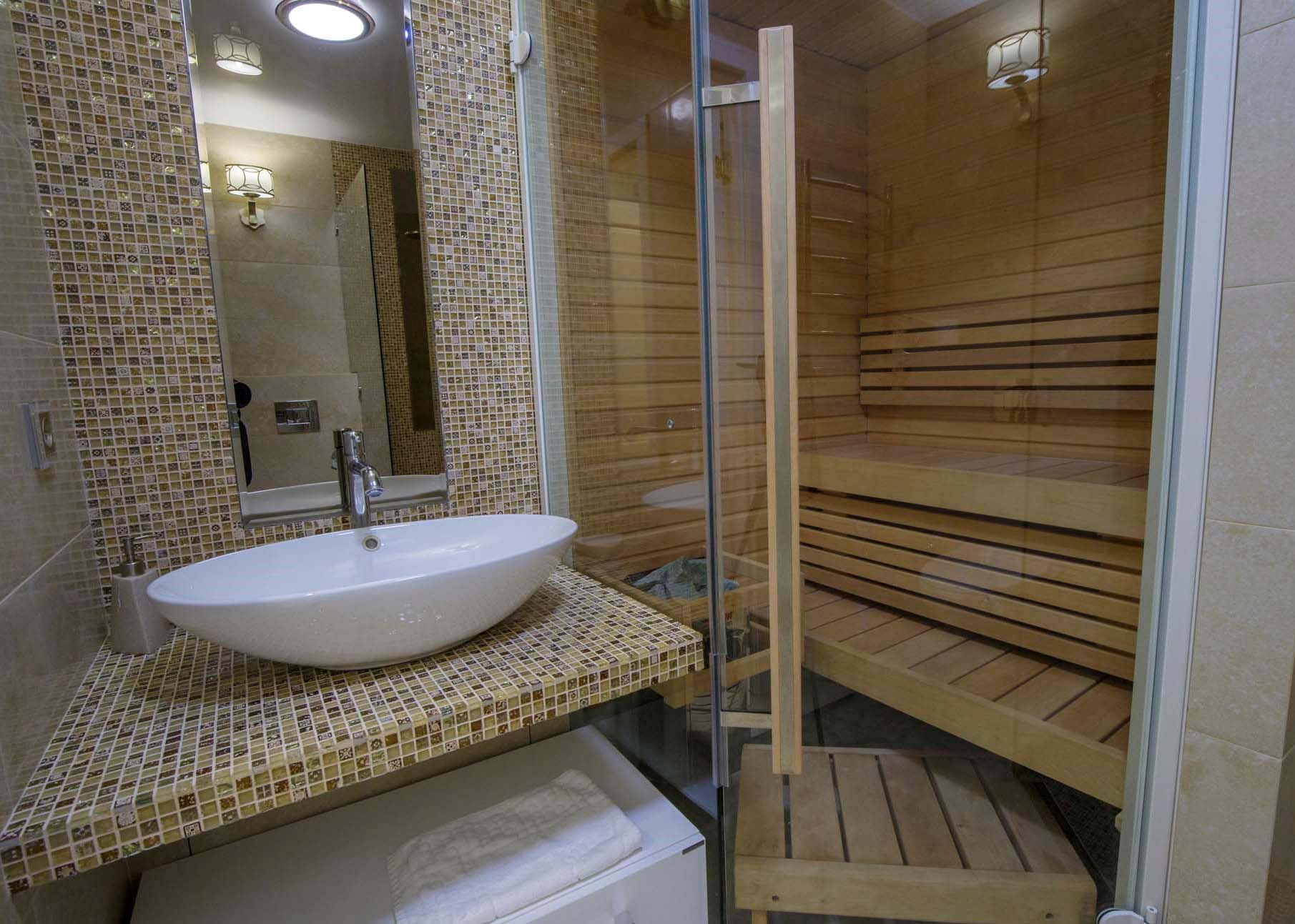 В номере установлена финская сауна, кухня оснащена посудомоечной машиной, духовкой и чайником.
